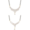 product_specification => Pearl Type – NA Silver Weight – 0 g Base Material – Alloy Brand – Parinaaz Precious/Artificial Jewellery – Fashion Jewellery Model Number – M129_M144 Plating – 24K Yellow Gold Type – Mangalsutra Color – White Chain Included – Yes Diamond Weight – 0 carat Diamond Shape – NA Gemstone – Cubic Zirconia Certification – NA Sales Package – 2 Mangalsutra Pendant , 2 Black Beaded Mangalsutra Chain