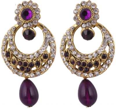 product_specification => Pearl Shape – Baroque Brand – SP Jewellery Precious/Artificial Jewellery – Fashion Jewellery Model Number – APNNER-755 Plating – Rhodium Type – Dangle Earring Occasion – Wedding and Engagement Ideal For – Girls , Women Color – Purple Diameter – 24 mm Weight – 20 g Height – 25 mm Width – 18 mm Base Material – Alloy Sales Package – 1 Pair of Earrings