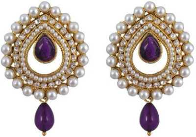 product_specification => Pearl Shape – Round Brand – SP Jewellery Precious/Artificial Jewellery – Fashion Jewellery Model Number – APNNER-155 Plating – Rhodium Type – Dangle Earring Occasion – Wedding and Engagement Ideal For – Girls , Women Color – Purple Diameter – 24 mm Weight – 20 g Height – 25 mm Width – 18 mm Base Material – Alloy Sales Package – 1 Pair of Earrings