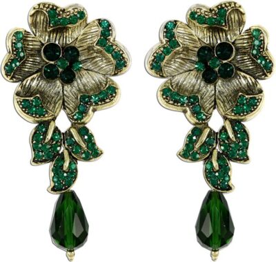 product_specification => Brand – The Fine World Precious/Artificial Jewellery – Fashion Jewellery Model Number – E60RJ010160GR-1 Plating – Brass Type – Drop Earring Model Name – Contemporary Designer Floral Occasion – Wedding and Engagement Ideal For – Women Color – Green Base Material – Metal Gemstone – Zircon