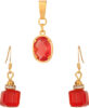Classic without chain pendant set which is attractively studded with red color stones and CZ stones , which gives a sparkling look to the jewellery. Pair this jewellery with any of your outfit for that pleasing and endearing look to your personality.