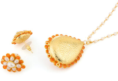 Voylla Orange And White Colored With Pacchi Work Alloy Jewel Set (Multicolor)